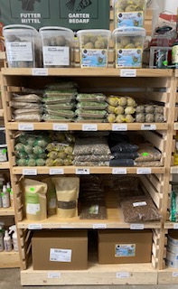 Im hinteren Bereich des Ladens befinden sich die Futtermittel für u.a. Geflügel, Vögel, Pferde, Schafe & Kühe.